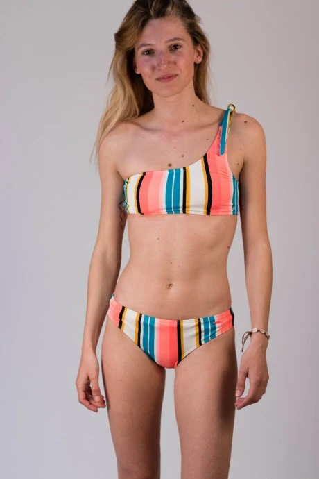 La tendance de cet été ? l’ensemble de maillot de bain Postwick de chez Protest ! Avec ses magnifiques rayures mutilcolores, voici de quoi apporter style, gaieté et couleur lors des chaudes journées d’été ! Le parfait maillot pour rayonner sur la plage, ou dans l’eau.