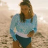 A vous les escapades estivales avec le maillot de bain une pièce Isis Jungle de la marque française SOWE Biarritz. Coupe canon, look vintage et élégant, ce maillot de bain extrêmement confortable vous accompagnera dans toutes vos sessions dans l’eau, sur une planche ou dans le sable chaud. On craque d’amour pour son décolleté ultra féminin, et son mix d’imprimé et d’uni qui souligne la taille et la silhouette. A porter tout l’été sans modération !